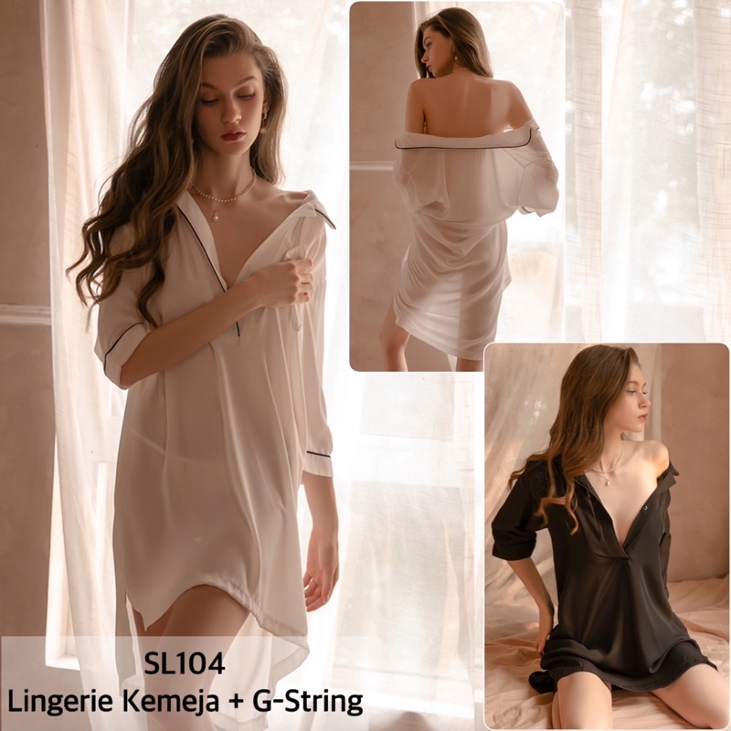 Promo Ulang Tahun Surabaya - Sexy Lingerie Kemeja Baju Tidur Sexy Wanita / Lingerie Boyfriend Shirt / Kemeja Transparan Bigsize Baju Sexy Wanita 104 (683)