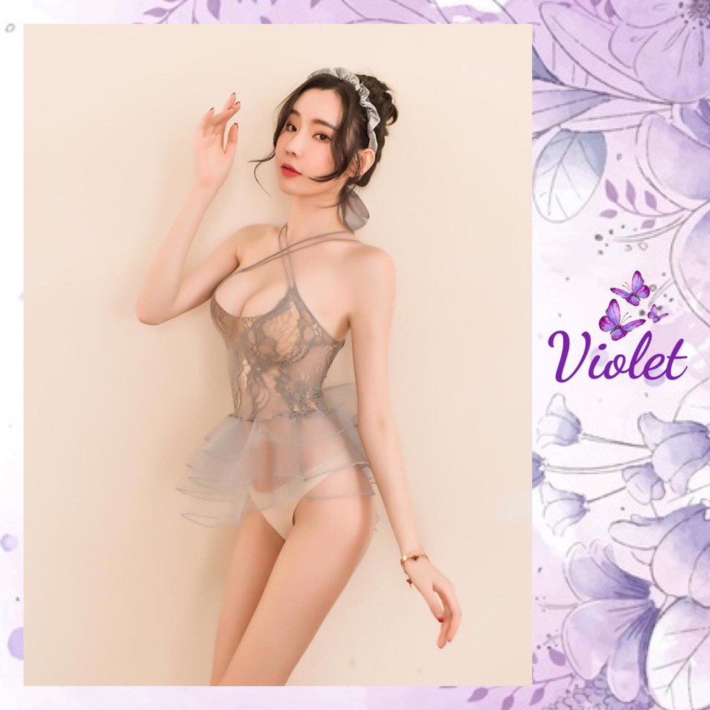 Promo Ulang Tahun Surabaya - Violet Lingerie Seksi Erotis Pengantin Baju Tidur Pakain Dalam Dress Lingerie Transparant 1070