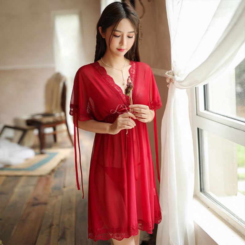 CAMELLIA Lingerie Sexy V-Neck Renda Pita 2 Style Baju Wanita Jumbo Transparant Fashion Import Baju Dinas Depan Suami Sleepwear G-string Termurah Baju Malam Pertama Terbaru Pakaian Dalaman Wanita