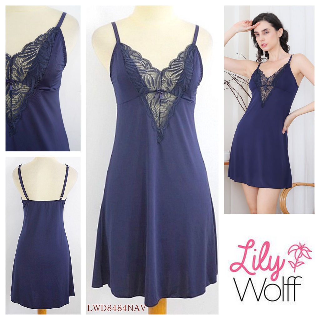 Baju Tidur / Lingerie Wanita Dress Sexy Renda Premium LILY WOLFF Lembut Halus Elastis LWD8484NAV