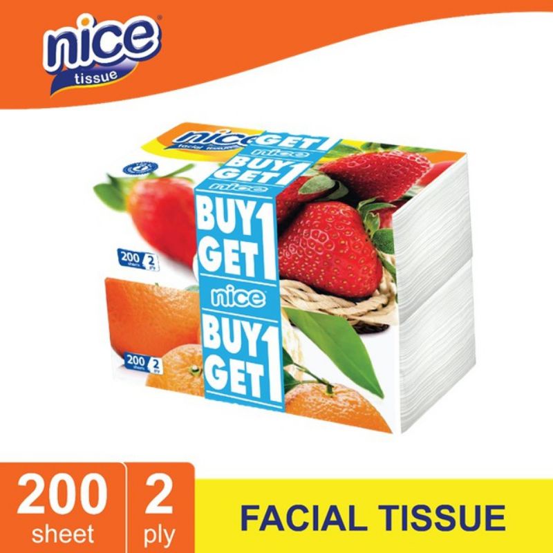 NICE Facial Soft Pack 200's (Buy 1 Get 1) Tissue Wajah Bandung